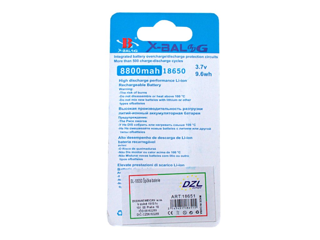 Dobíjecí Li-ion baterie 18650 s výstupkem, 3,7V 8800mAh Skladem v ČR