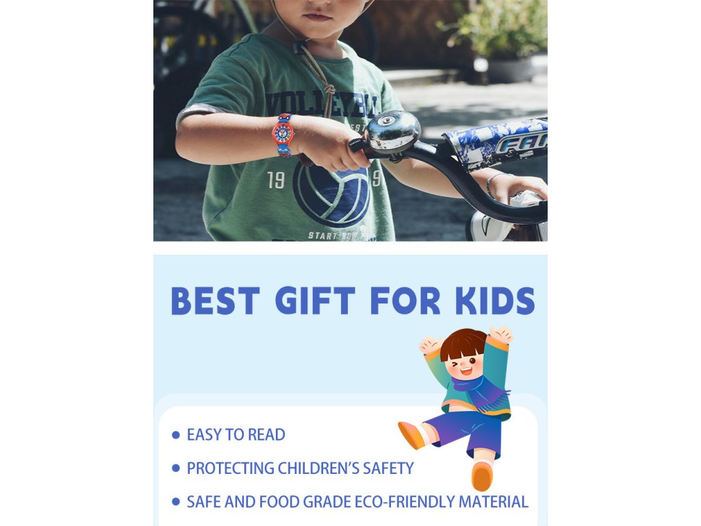 Hodinky jsou navrženy tak, aby bylo co nejlépe děti pochopily první seznámení s časem byla zábava. Řemínek je vyroben z měkčeného PVC a je velmi pohodlný, strojek je japonský poháněn knoflíkovou baterií. Nejprodávanější dětské hodinky které kluci a holky milují.