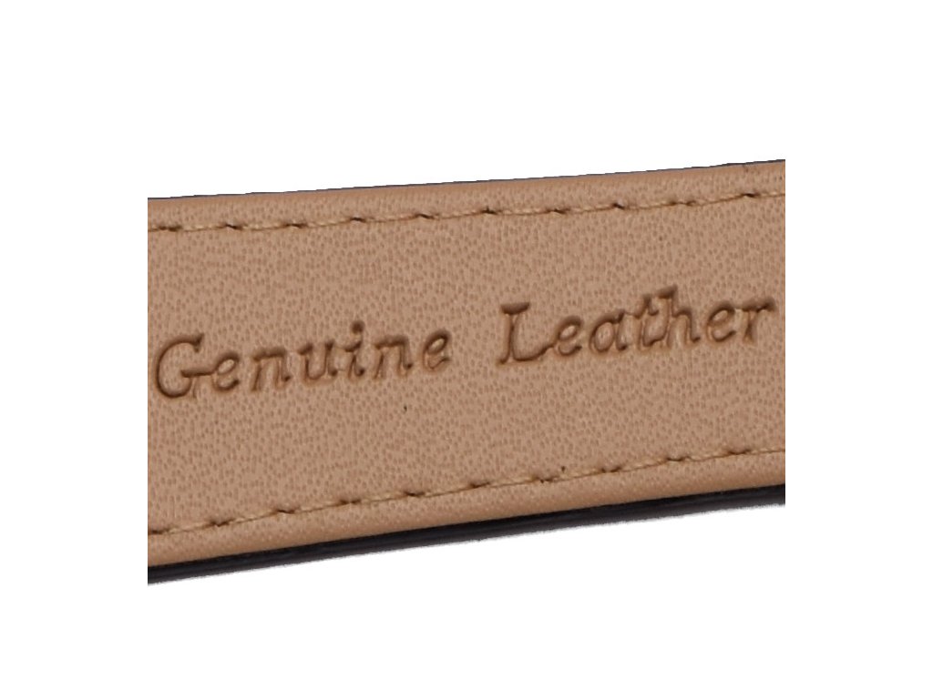 Řemínek je vyroben z kvalitní pravé kůže a přezka je kovová pochromovaná, největší předností je decentní prošití.